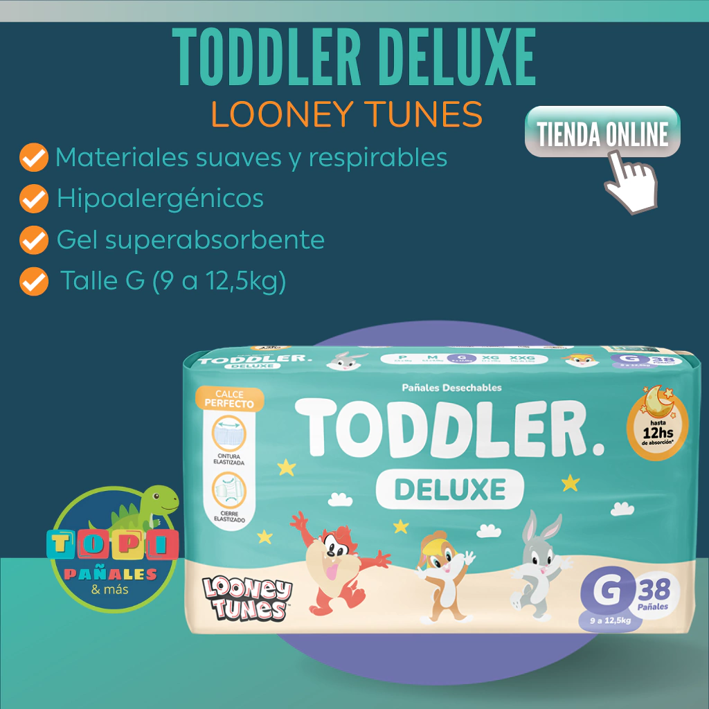 Con Toddler Deluxe, cada momento es una oportunidad para que tu pequeño disfrute con total libertad y tranquilidad, rodeado de sus personajes favoritos. ¡Elegí la mejor protección con la alegría de Looney Tunes!